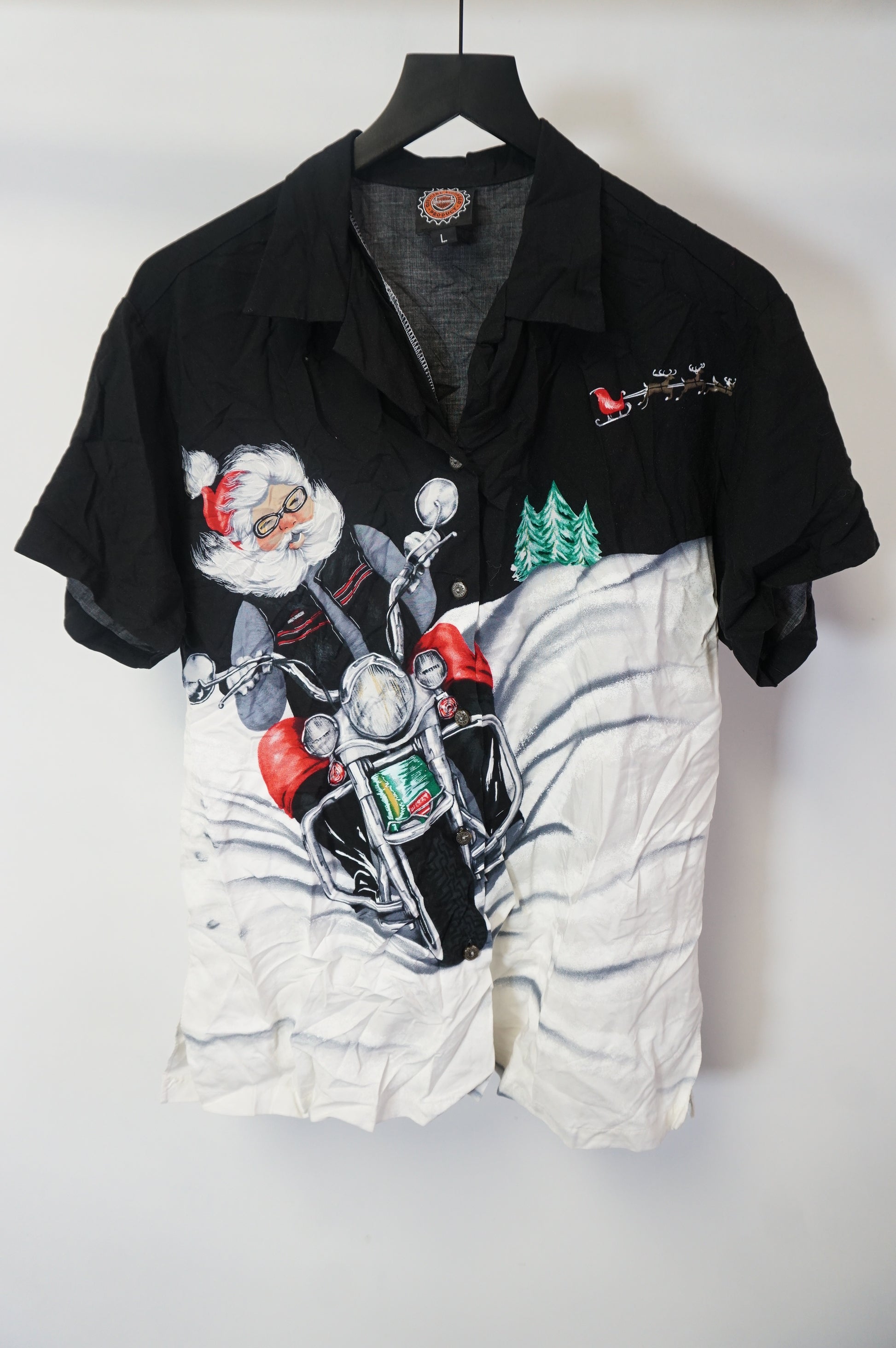 (M/L) Harley Davidson Santa Biker Button Up Shirt