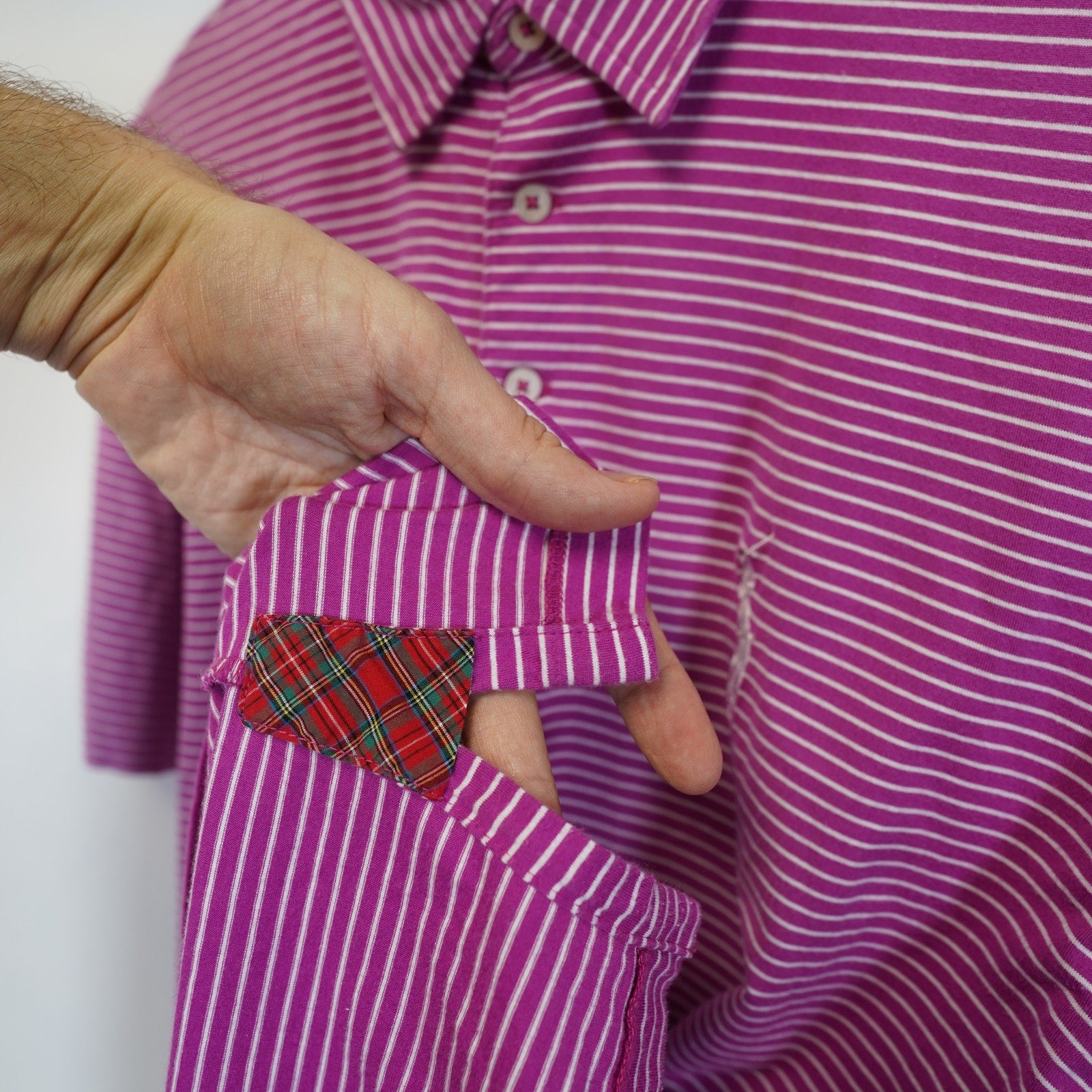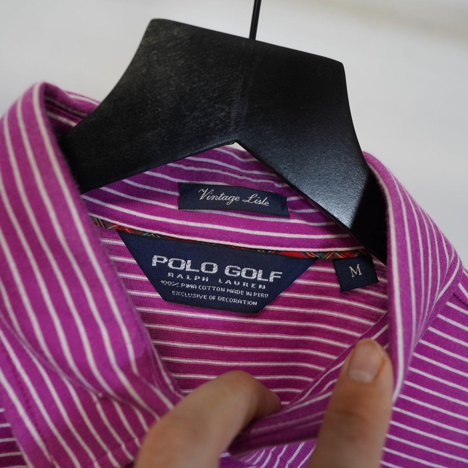 Get ready to hit the links or simply enjoy a stylish day out with this fantastic Vintage Polo Golf Ralph Lauren Lisle Shirt! This men's size Large polo features a charming pink striped pattern, instantly adding a touch of classic sophistication to your wardrobe. The iconic Big Pony logo proudly displayed signifies its quality and heritage, perfect for any golf enthusiast or a collector of vintage Ralph Lauren pieces.