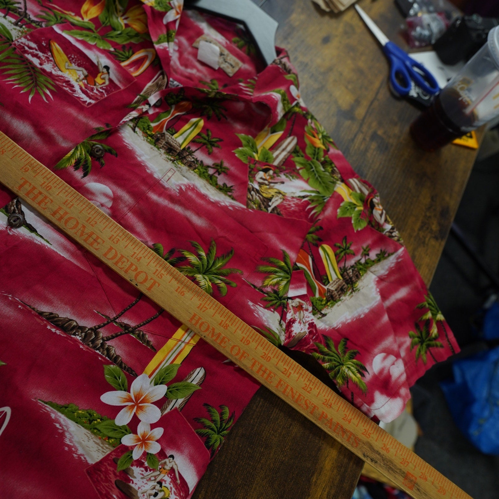 (M) Vintage Blue Hawaii 90s Hawaiian Button Down Shirt Men's M Red Palm Tree Surf