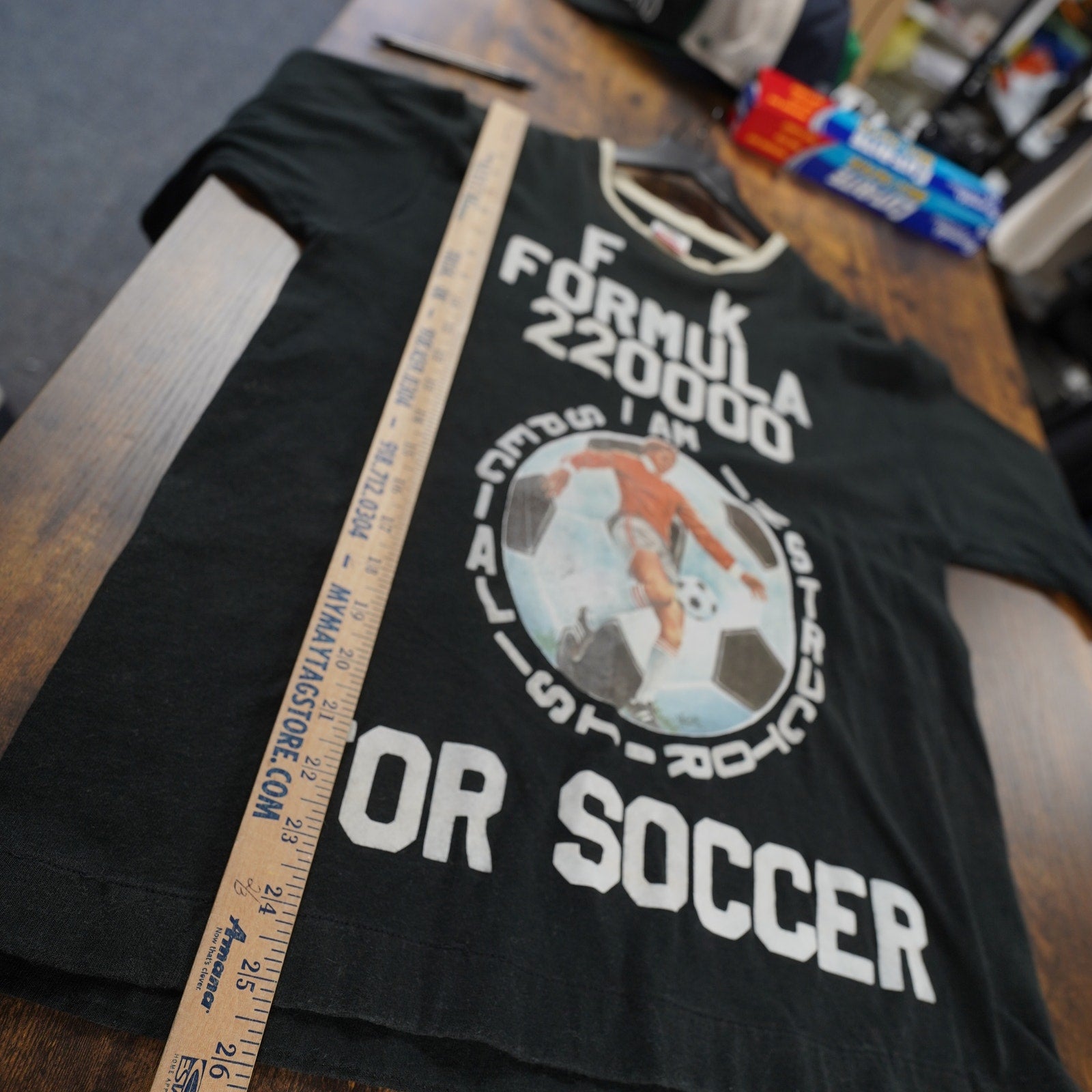 Get ready to kick off your style with this fantastic vintage World Soccer Formula single stitch t-shirt!