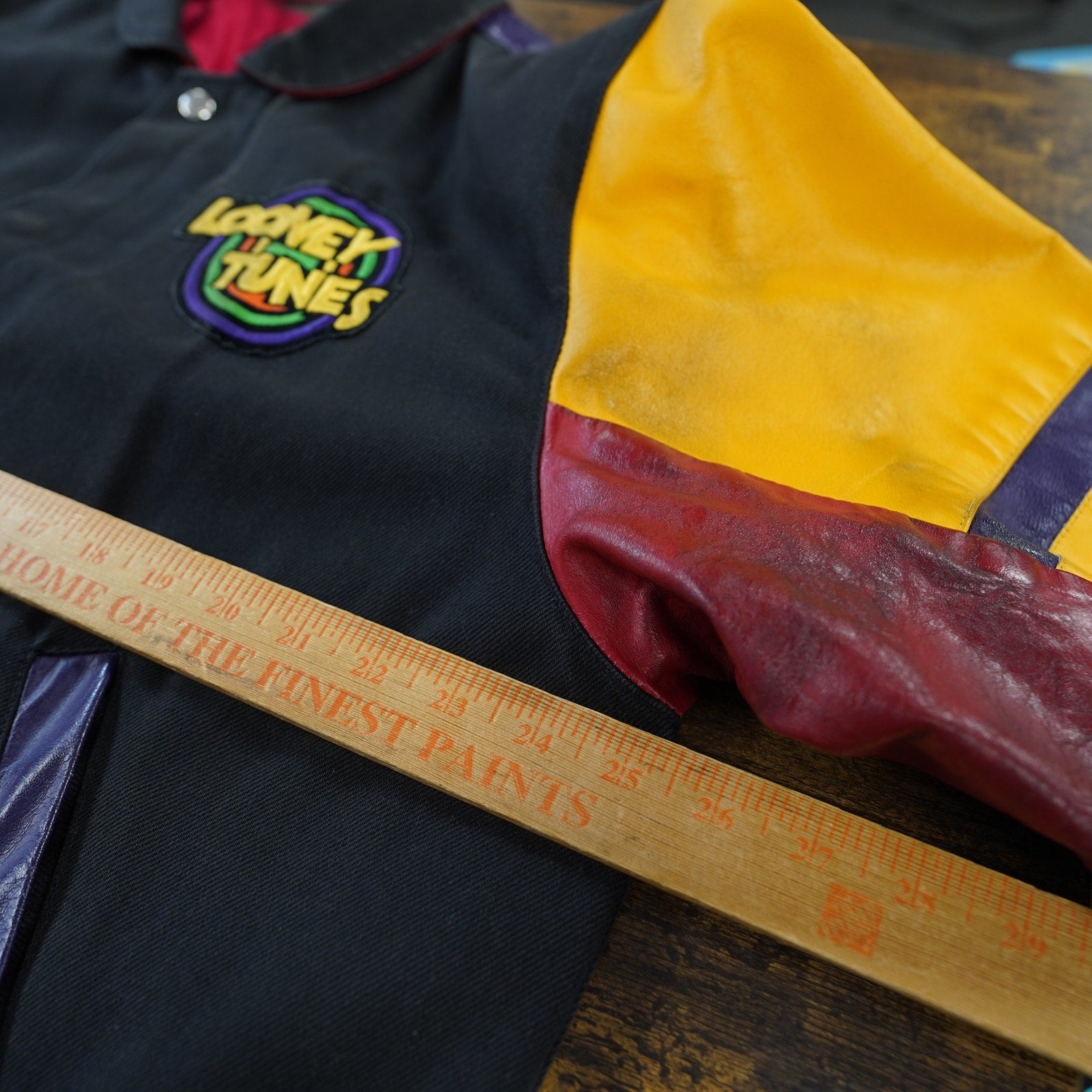 (M) Vtg 1992 Jeff Hamilton Looney Tunes Leather Canvas Jacket M 90s Rap Cartoon Art