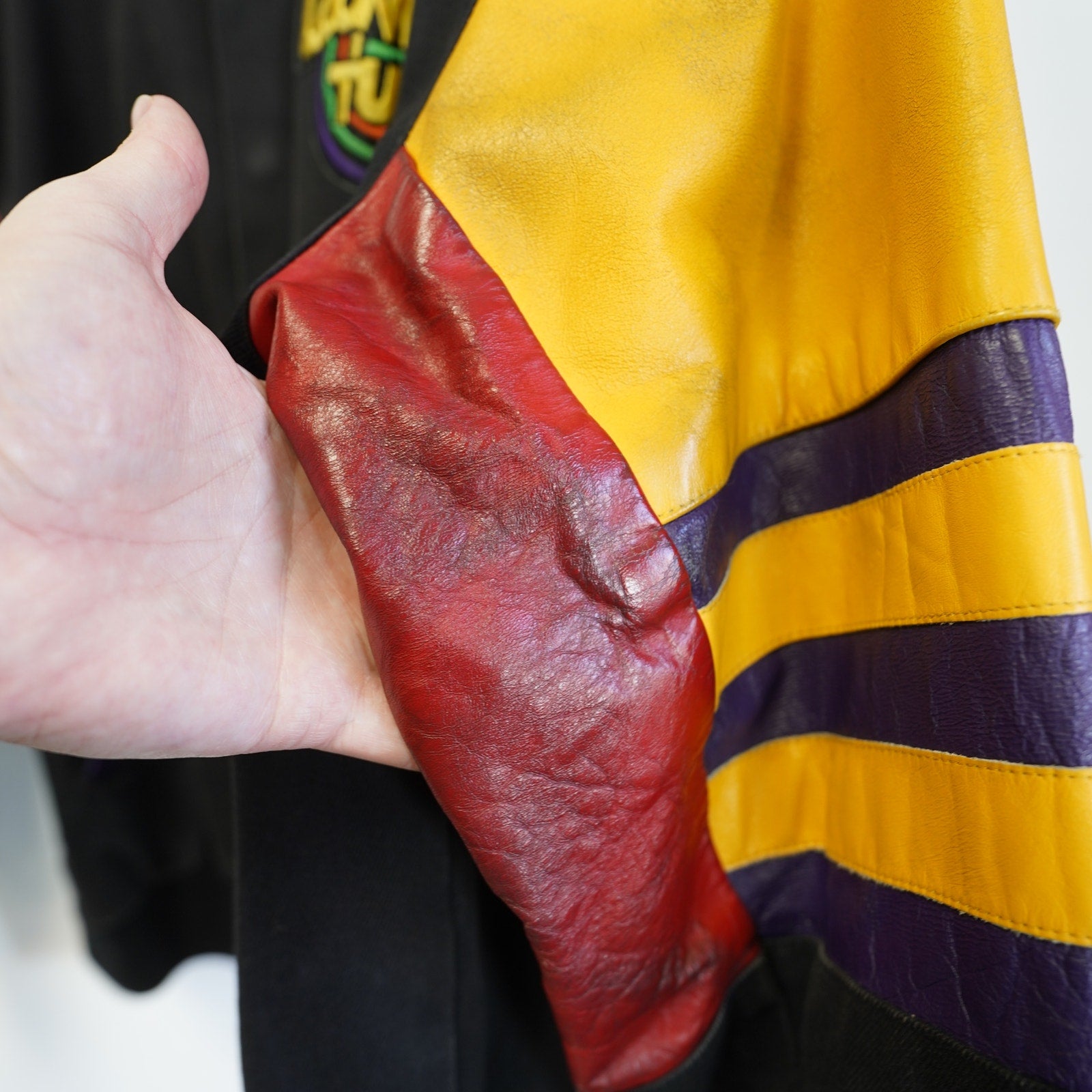 Step back into the 90s with this awesome vintage 1992 Jeff Hamilton Looney Tunes leather and canvas jacket! This unique piece features iconic cartoon art and a design that screams retro rap culture. Perfect for any collector or anyone looking to add a pop of nostalgia to their wardrobe.