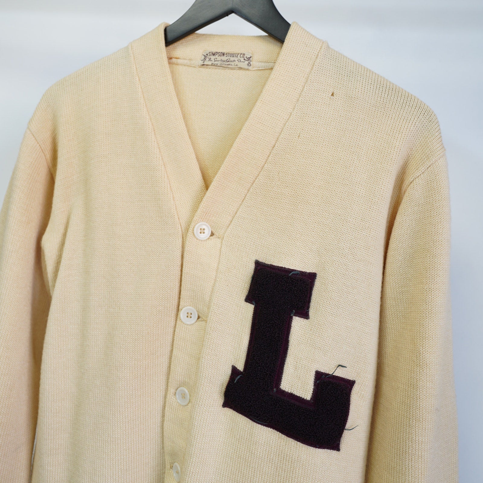 (S) True Vintage 1940s-50s Letterman Knit Wool Cardigan Sweater "L" Men's S Tan