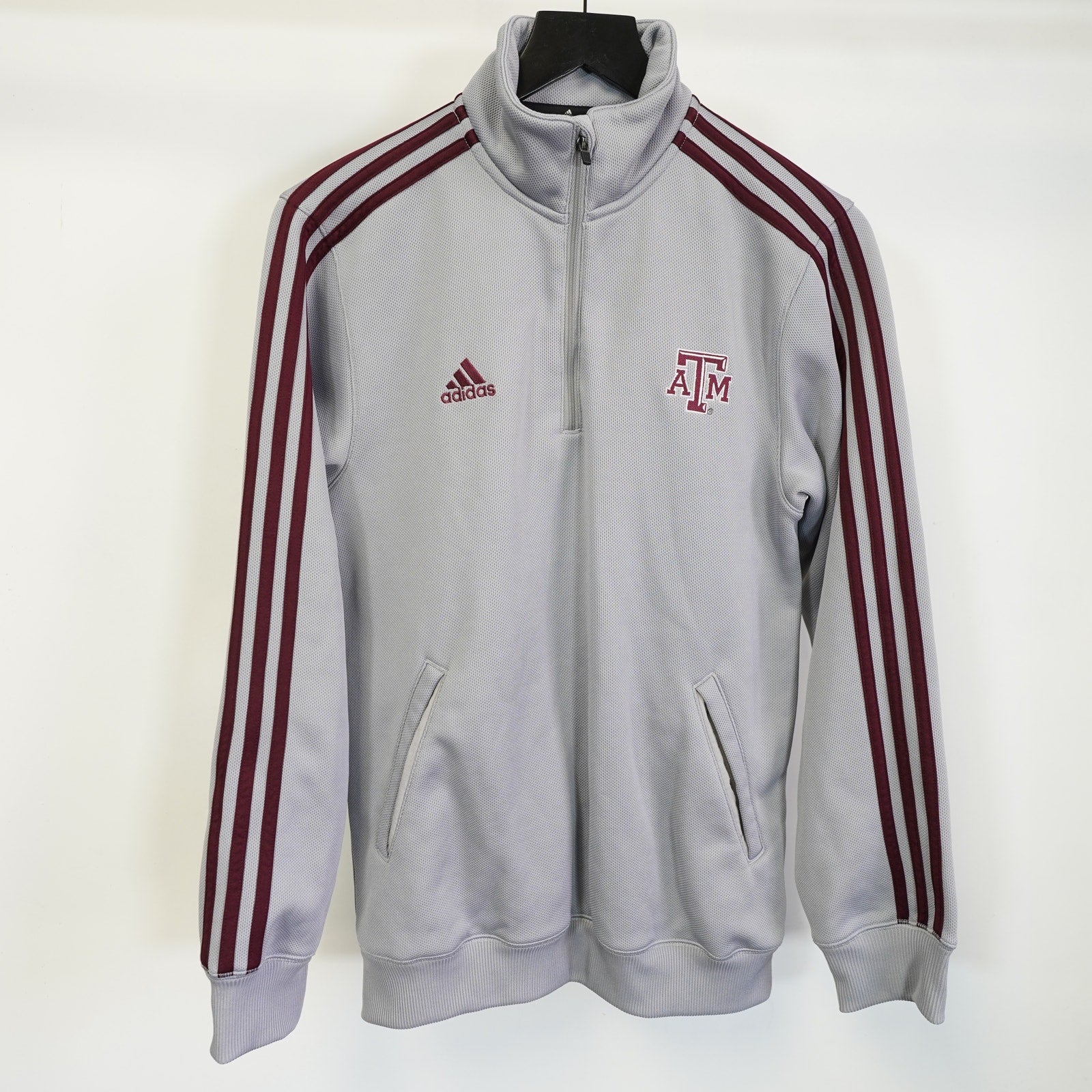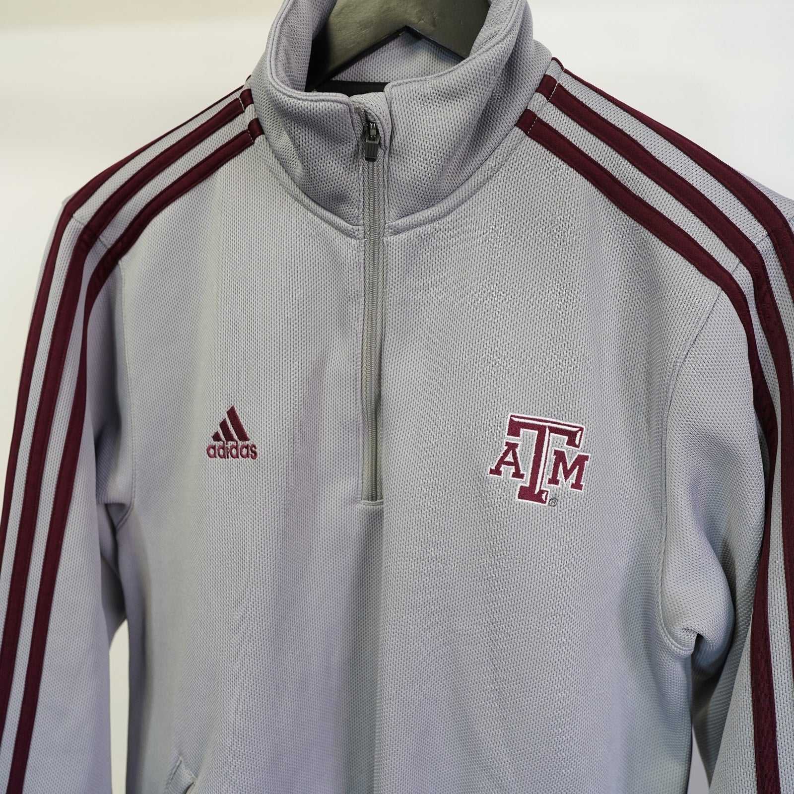 You are viewing a vintage Adidas Texas A&M Aggies Climawarm full-zip jacket from the 2000s (Y2K era), in men's size small and in great condition!