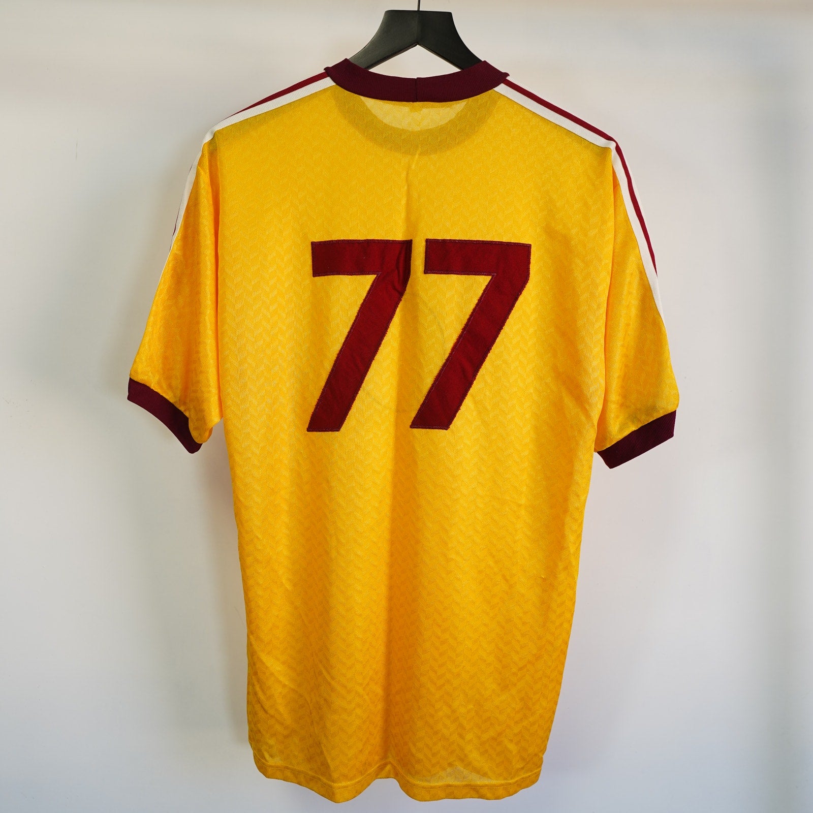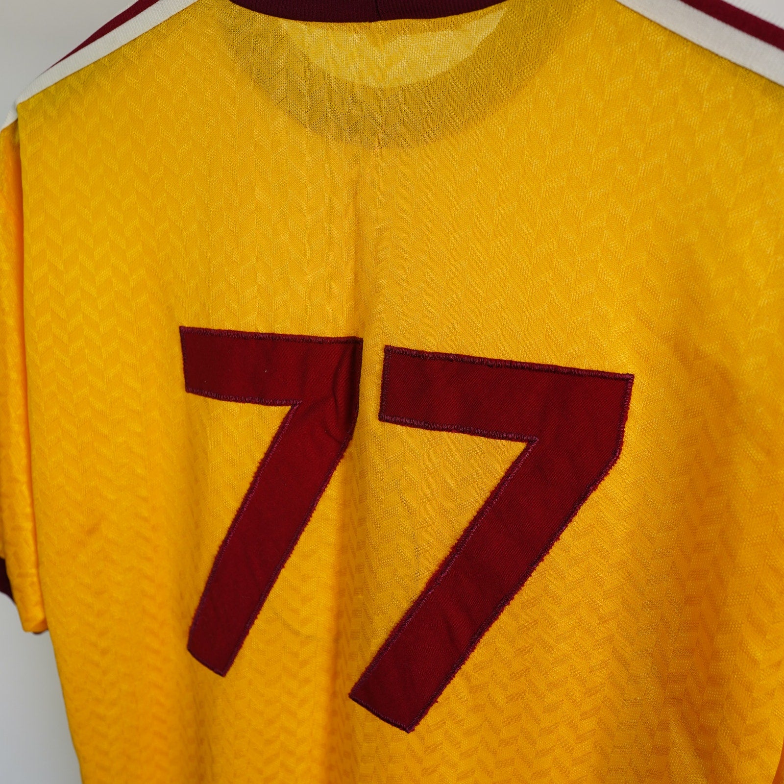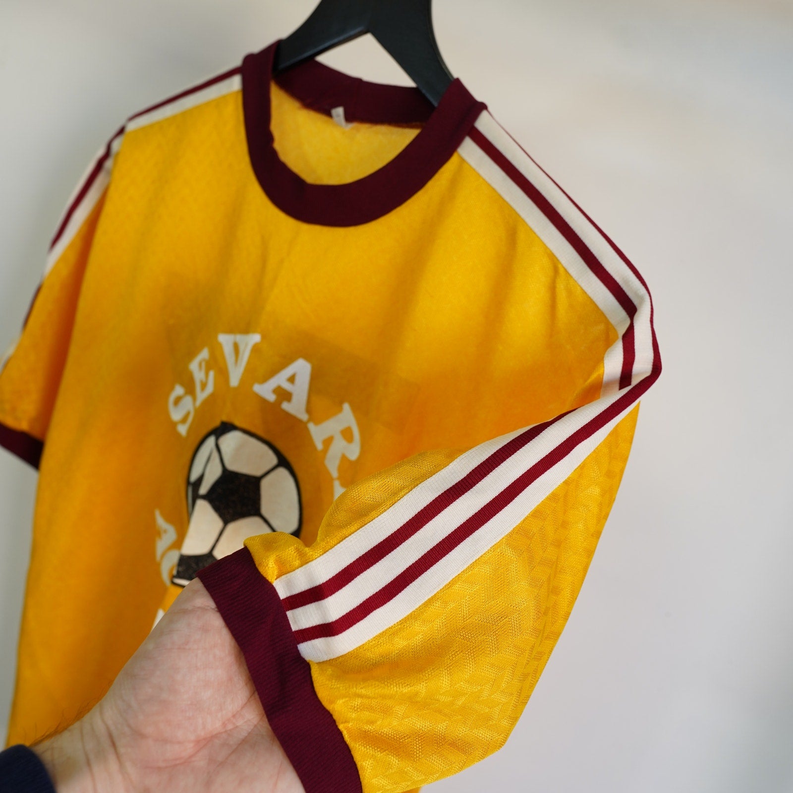 Step back in time with this awesome true vintage 70s soccer academy jersey! This vibrant yellow jersey is a men's size medium and features authentic stitched detailing. Perfect for soccer fans, vintage collectors, or anyone looking to add a unique piece to their wardrobe. This jersey is a real piece of soccer history.