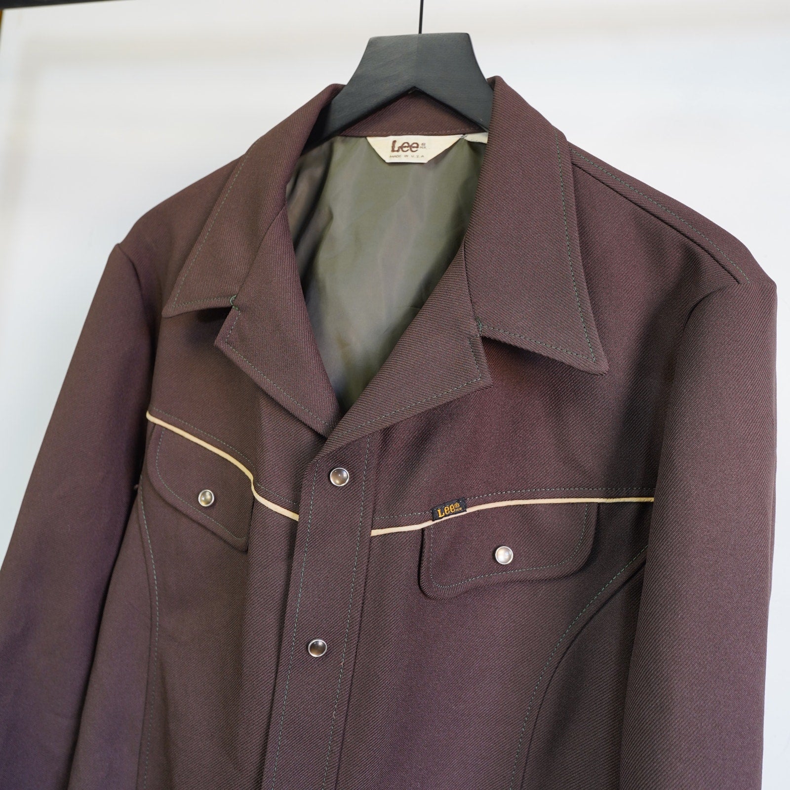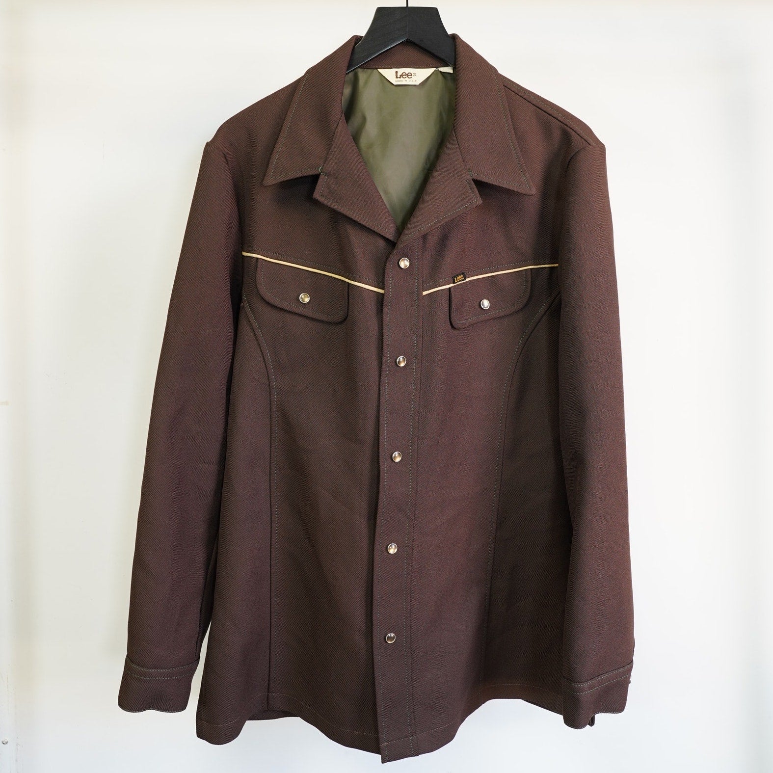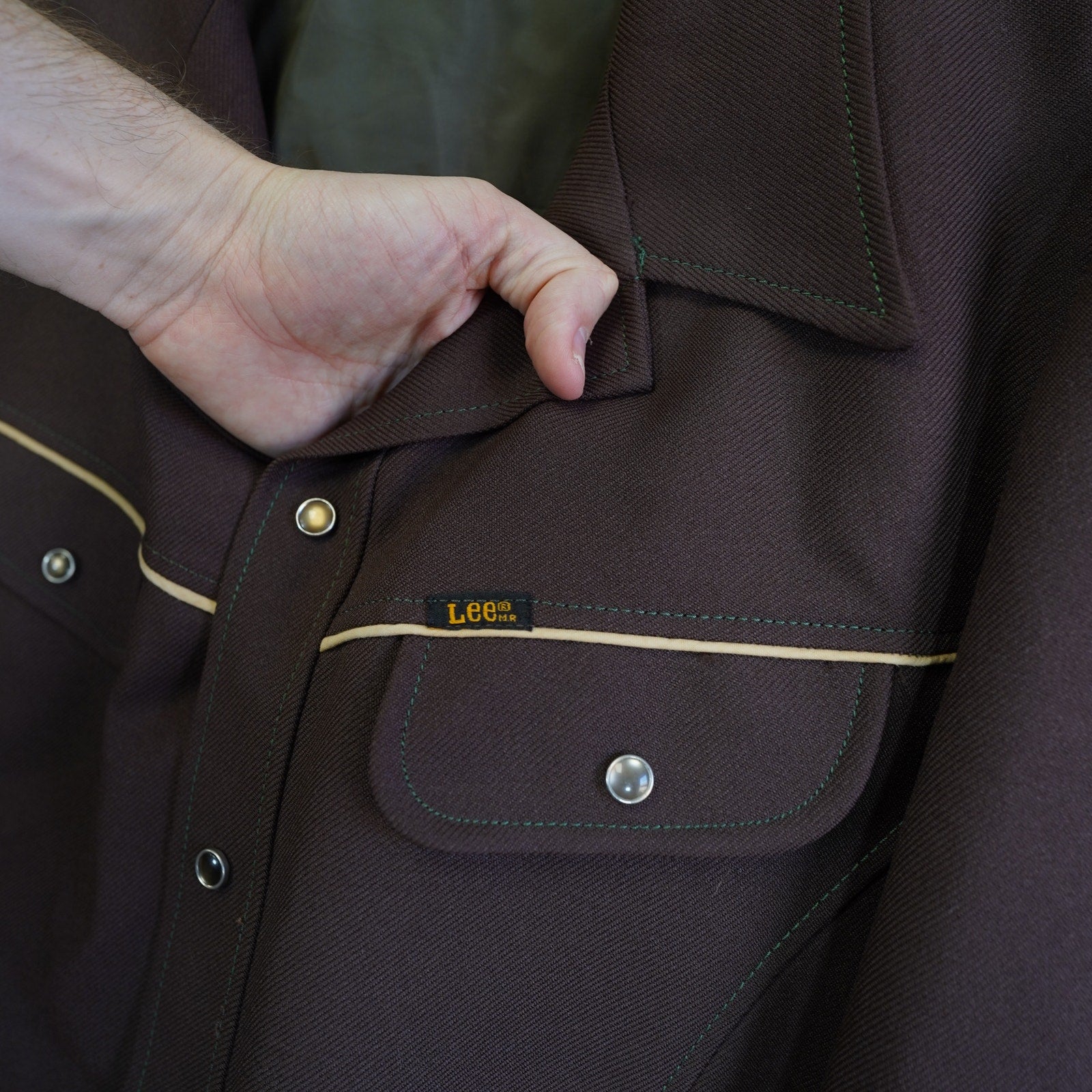 (L) True Vintage Lee Western 70s Polyester Pearl Snap Button Down Shirt Mens L Brown