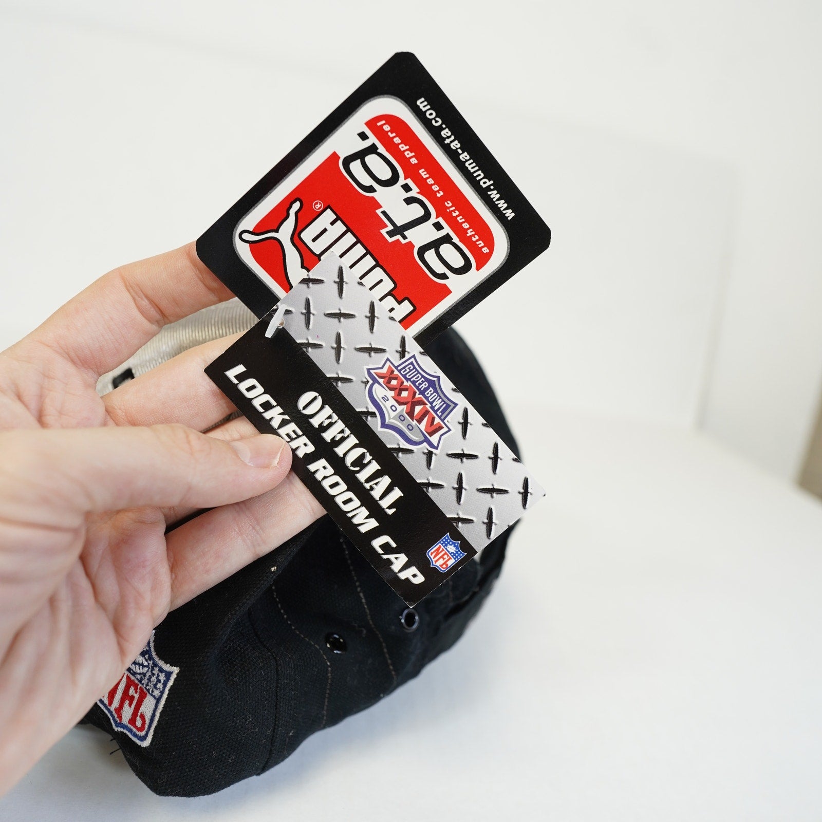 Vintage St. Louis Rams Super Bowl Champions Snapback Hat! This Puma hat is brand new with tags and has never been worn. The hat is black. It's a great way to show your love for the team. Don't miss out on this opportunity to own a piece of sports history. Perfect for any Rams fan or collector! Grab it now before it's gone!