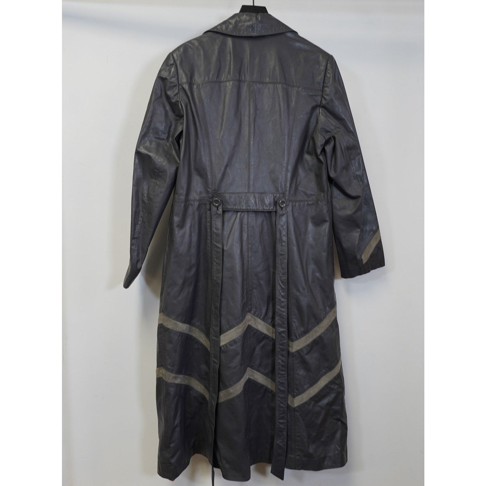 (Women's 20T) Vintage Montgomery Ward Tannery Belted Leather Gray Trench Coat Jacket
