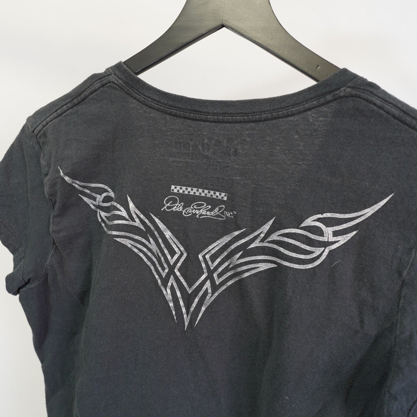 (Women's L) Dale Earnhardt Sr. Nascar Y2K V-Neck T-Shirt Women's L 2000s Goth Black