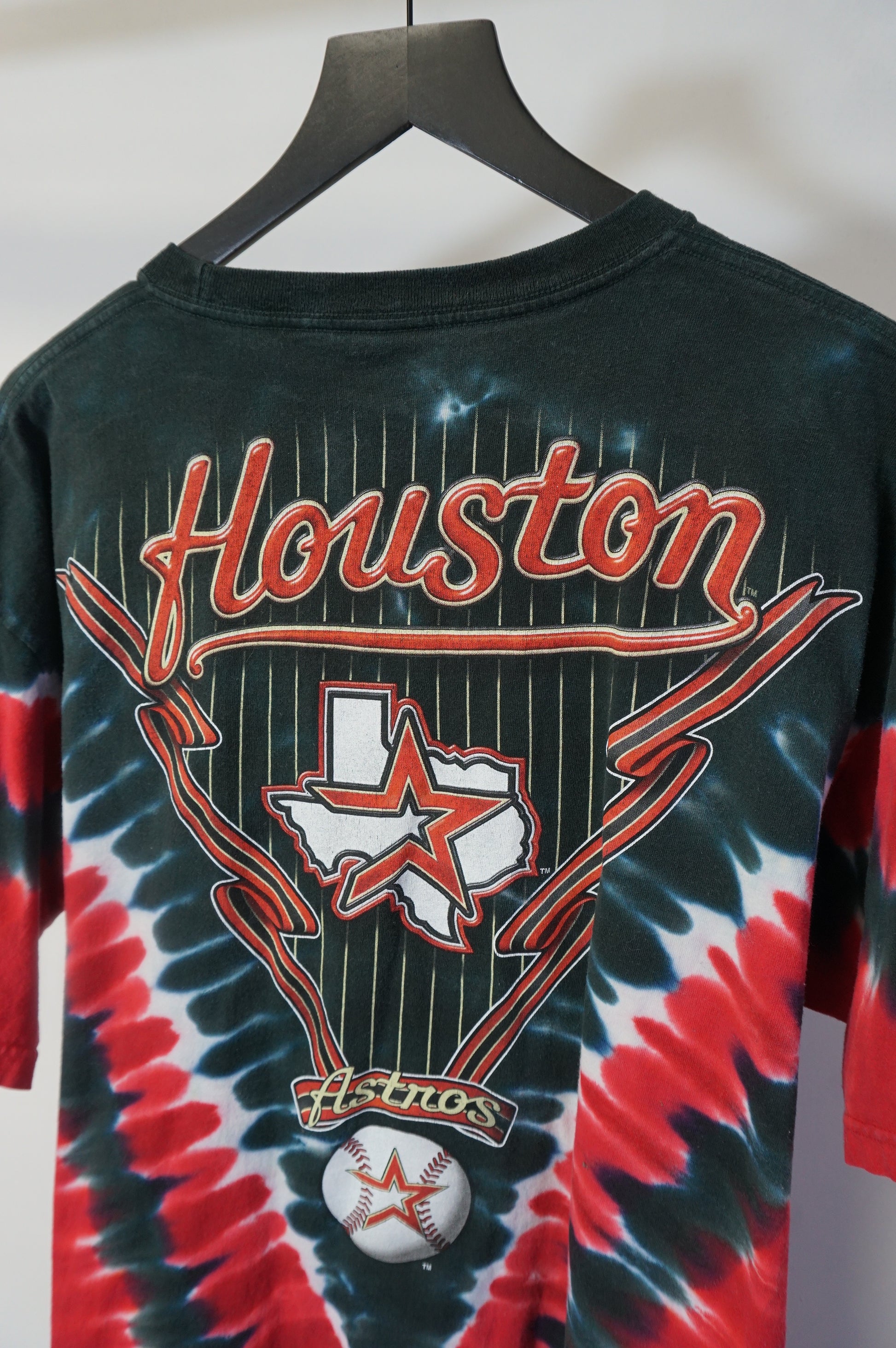 (XL) Houston Astros Vintage Tie Dye Liquid Blue Baseball T-Shirt
