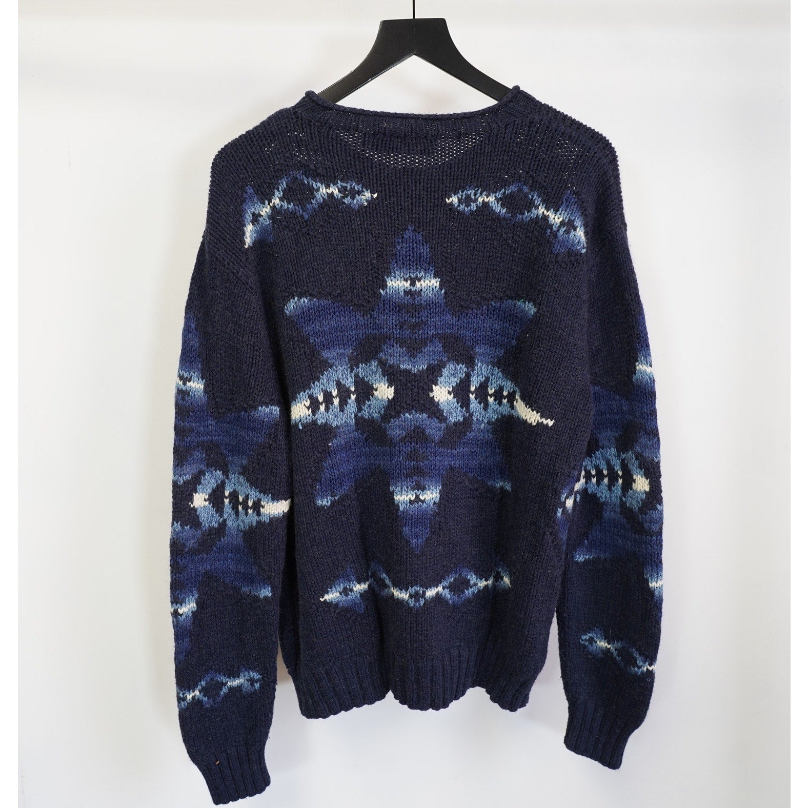 (XL) Vintage Polo by Ralph Lauren Hand-Knit Aztec Sweater Men's XL Southwest Blue