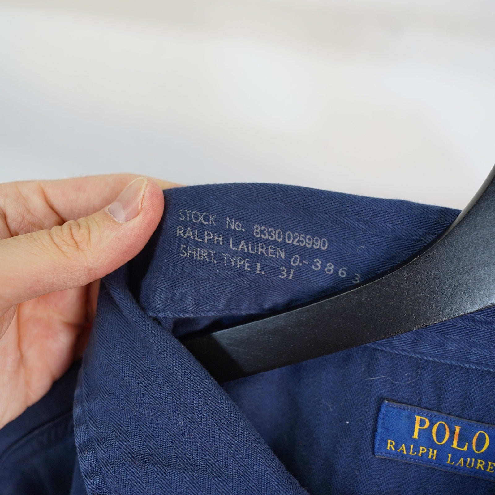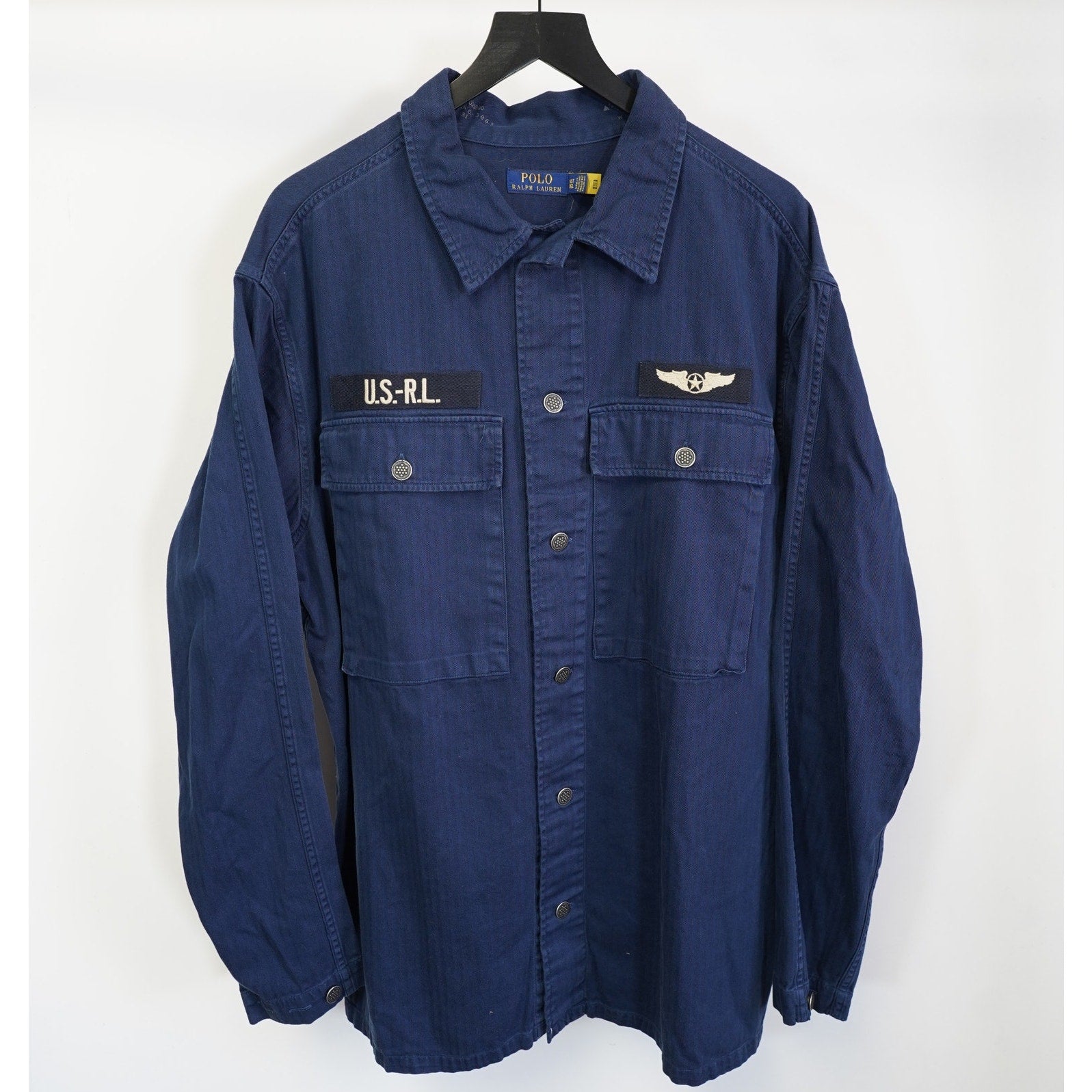 (XLT) Polo Ralph Lauren USRL Flight Patch Military Overshirt Mens XLT Navy Blue Jacket