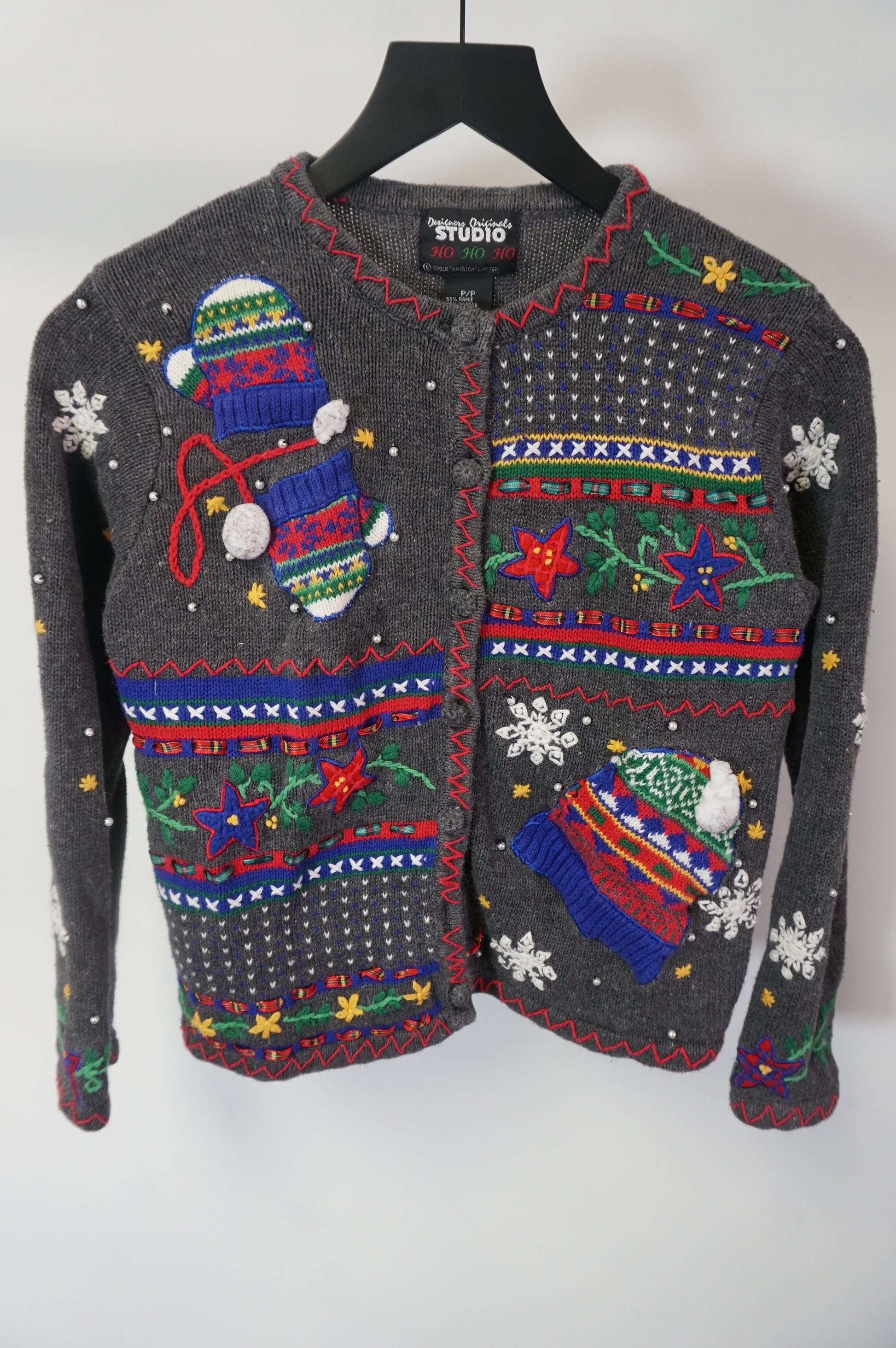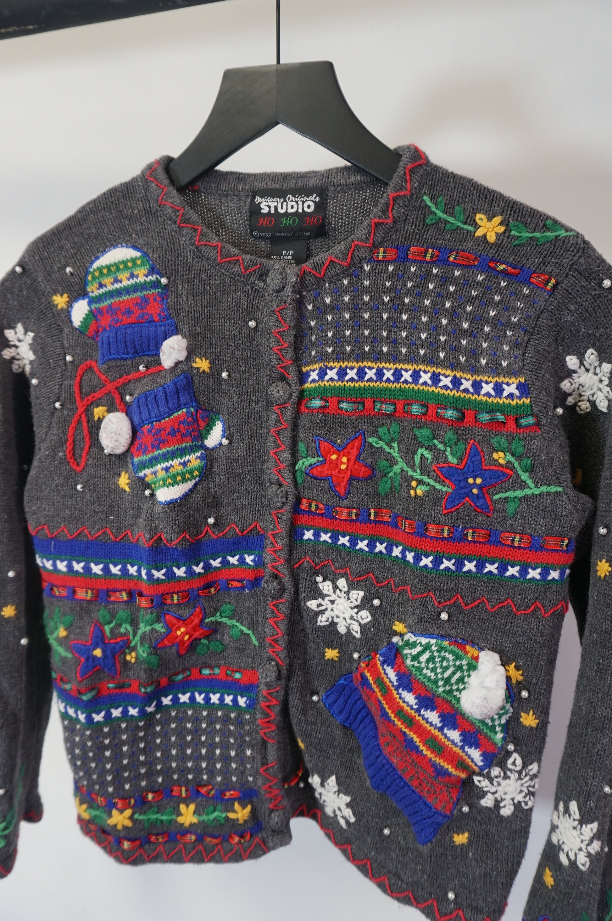 (XS/S) Beanie & Mittens Knit Christmas Cardigan