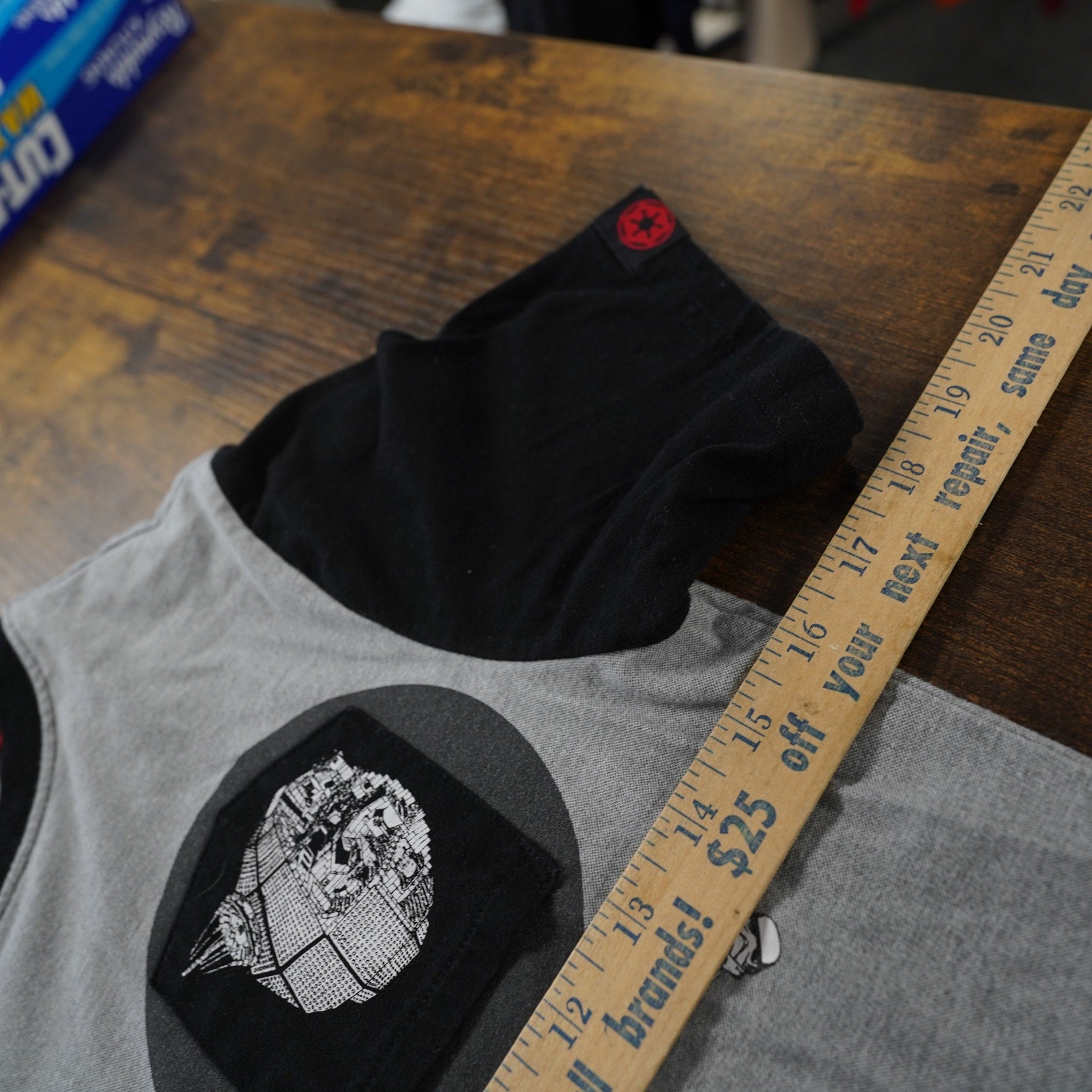 Get ready for an epic adventure with this fantastic vintage Lego Star Wars Storm Trooper t-shirt! Perfect for any young fan of the iconic franchise, this tee brings together the fun of Lego with the classic appeal of Star Wars. It's a super cool and comfortable piece for everyday wear, playtime, or showing off their favorite characters. This charming gray t-shirt features a striking black Storm Trooper graphic made from Lego bricks, adding a playful twist to a beloved villain. It's designed for active kids, offering both style and comfort. Imagine the smiles and conversations this unique shirt will spark! In excellent pre-owned condition, it's ready for its next mission in your child's wardrobe. It's a wonderful way to add a touch of galactic fun to their outfit. Don't miss out on this awesome find!
