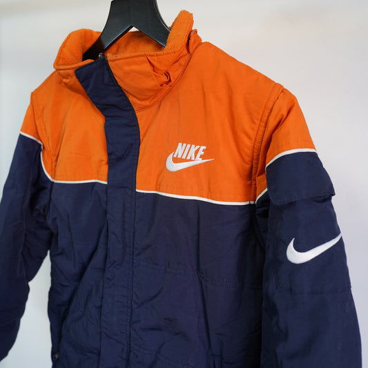 (Youth M) Nike Puffer Jacket Reversible 10-12 Big Swoosh Two-Tone Orange Navy