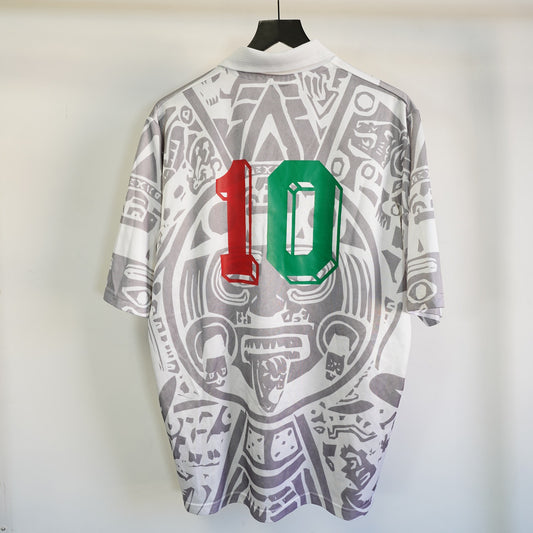 (L/XL) Vintage 1998 Mexico Away Soccer Futbol Jersey 90s Bootleg Aztec Calendar