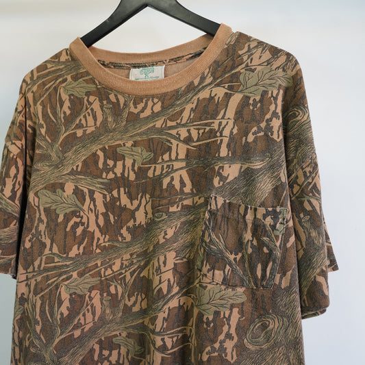 (XXL) Vintage Mossy Oak Woodland Camouflage Single Stitch Hunting T-Shirt Men's XXL
