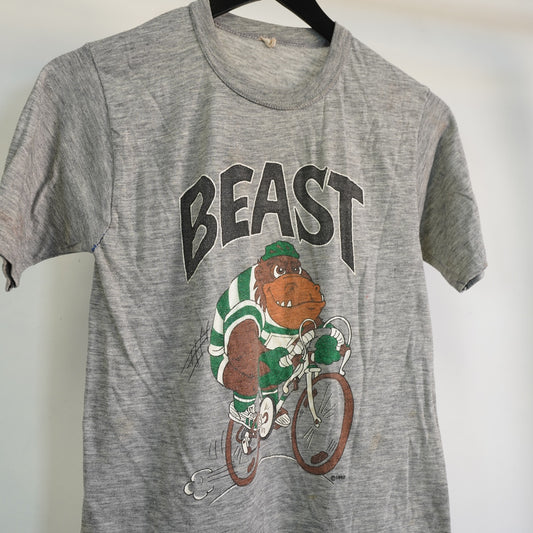 (XS) True Vintage 1980 Beast Bicycle Single Stitch T-Shirt Unisex Gray Distressed