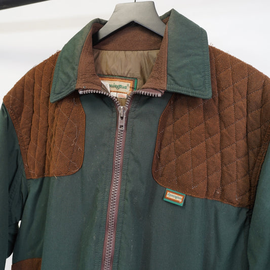 (XL) Vintage Remington Outdoor Hunting Jacket Men's XL Forest Green Suede Brown