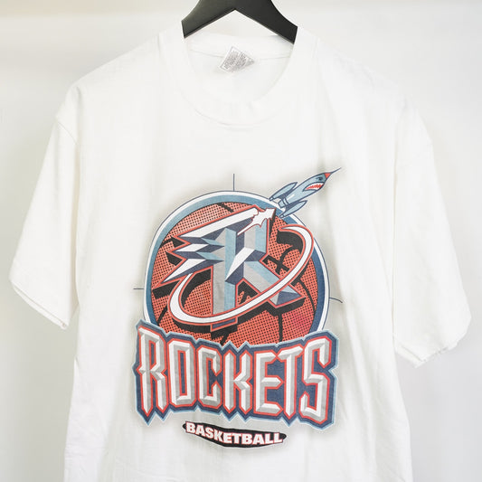 (XL) Vintage Houston Rockets Basketball Single Stitch T-Shirt Men's XL White 90s