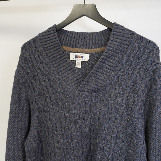(XXL) Joseph Abboud Cable Knit Fisherman V-Neck Wool Sweater Men's XXL Gray Preppy