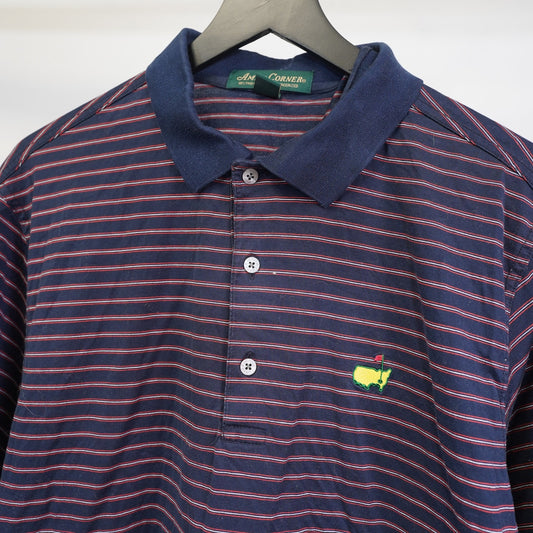 (M) Vintage Amen Corner Masters Striped Golf Polo Shirt Men's M Navy Red Performance