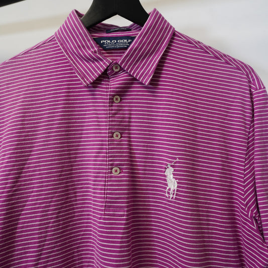 (M) Polo Golf Ralph Lauren Vintage Lisle Shirt Men M Pink Striped Big Pony Tournamen