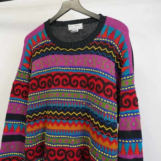 (Women's L) Vintage 90s Lisa Ashley Striped Beaded Knit Sweater Multicolor Retro