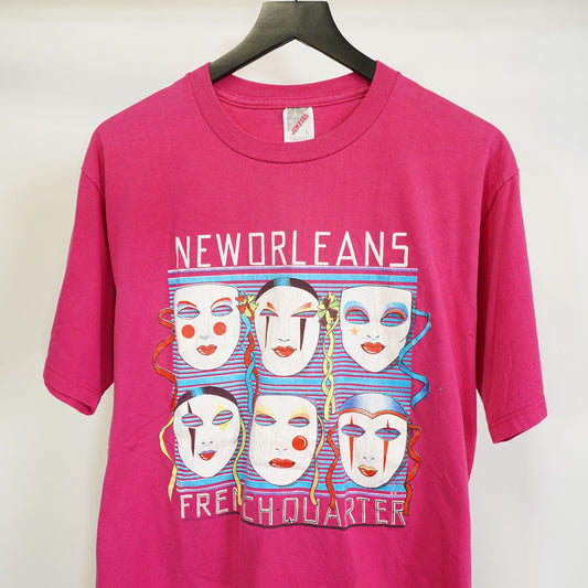 (L) Vintage New Orleans French Quarter Masquerade T-Shirt Men's L Pink Mardi Gras