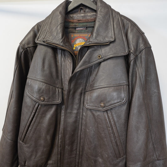 Vtg Wilsons Adventure Bound Leather Bomber Jacket XL Brown Aviator Indiana Jone