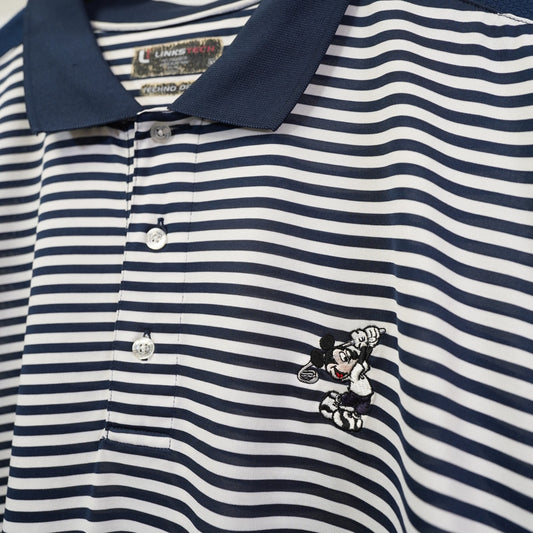 (XL) Mickey Mouse Embroidered Disney Links Tech Golf Polo Shirt Mens XL Striped Blue