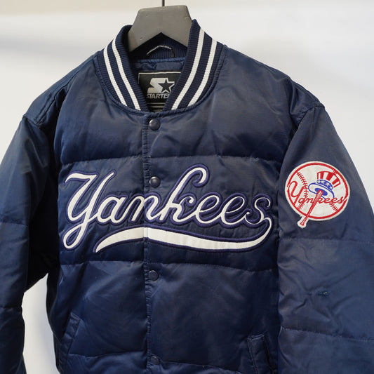 (M) Vintage New York Yankees Starter Satin Bomber Puffer Jacket Men's M Blue NY MLB