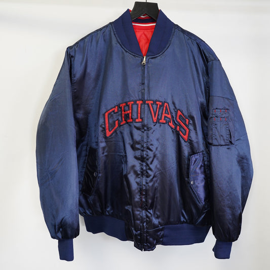 (M) Vintage Chivas De Guadalajara Soccer Futbol Navy Red M Reversible Bomber Jacket