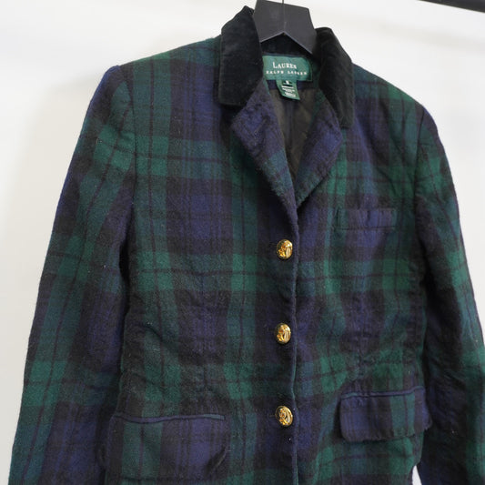 (Women's Sz. 8) Vintage Lauren Ralph Lauren Tartan Plaid Wool Blazer Suit Jacket