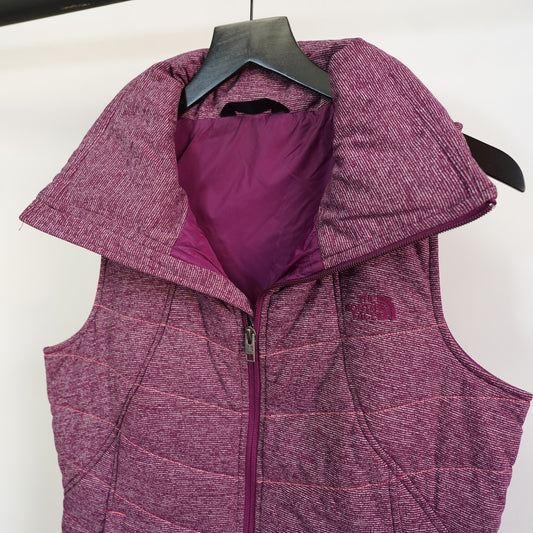 (Women's M) The North Face Pseudio Puffer Vest Heather Dark Berry Stripe Size M Pink