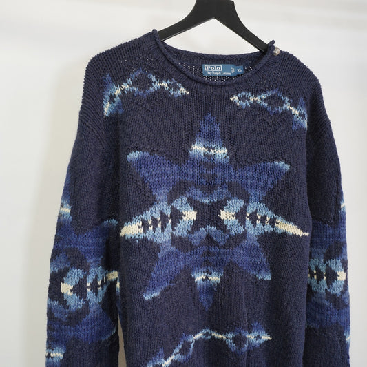 (XL) Vintage Polo by Ralph Lauren Hand-Knit Aztec Sweater Men's XL Southwest Blue