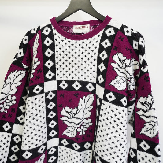 (Women's XL) Vintage Essentials Floral 90s Knit Sweater Women's XL Cottage White Purple Retro